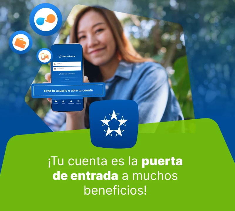 Primero descarga el app de Banco General. Al ingresar, verás el botón “Crea tu usuario o abre tu cuenta”. Selecciona esta opción para comenzar el proceso rápido. Solo necesitarás tener tu cédula panameña mano para identificarte.